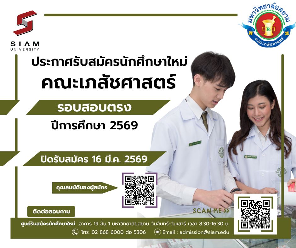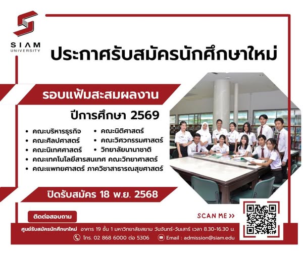 รายละเอียด : https://admission.siam.edu/2025/10/04/admission69/