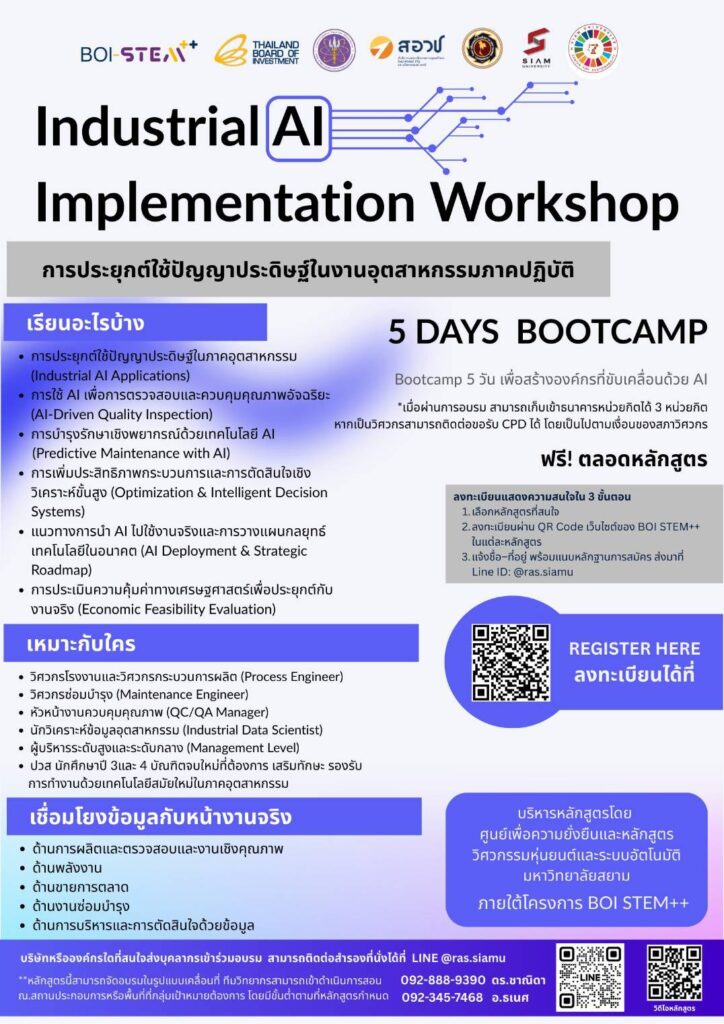 🧠 3. หลักสูตรการประยุกต์ใช้ปัญญาประดิษฐ์ในงานอุตสาหกรรมภาคปฏิบัติ (Industrial AI Implementation Workshop) Boot camp 5 วัน