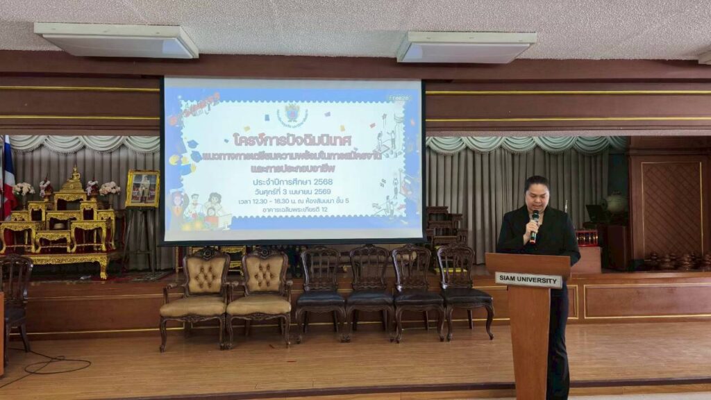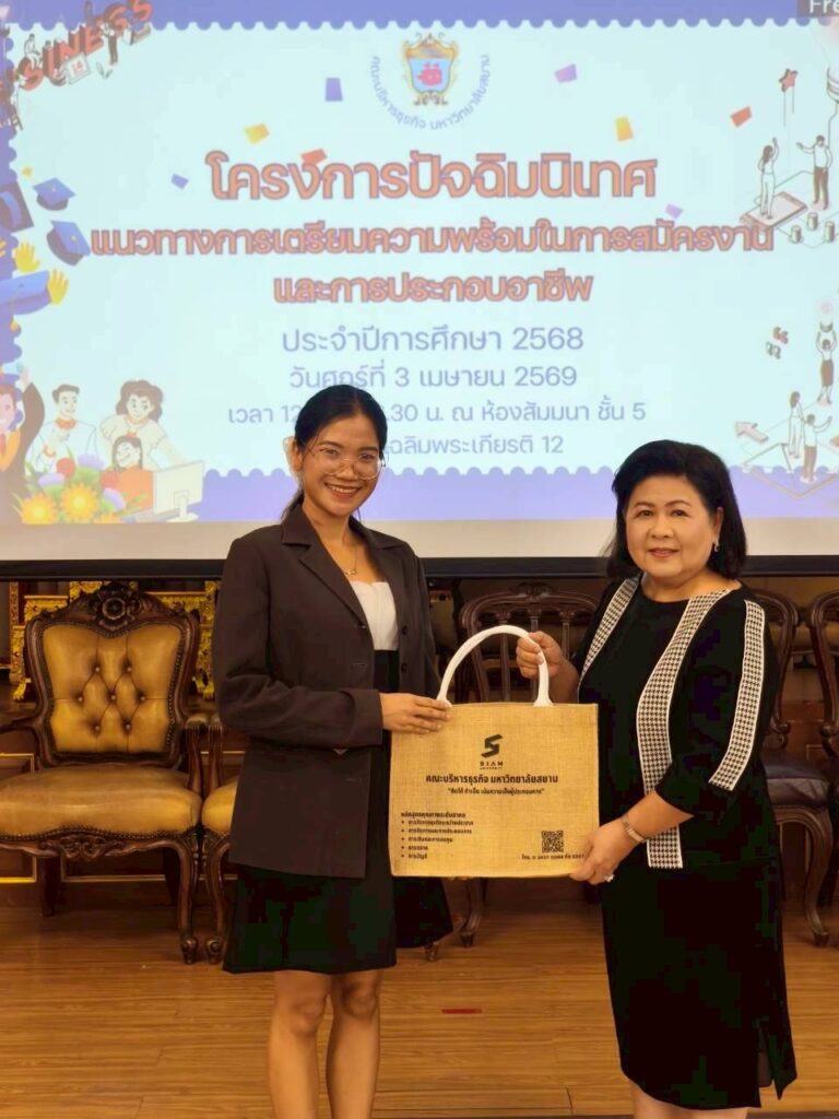 เพราะที่คณะบริหารธุรกิจ มหาวิทยาลัยสยาม เราไม่ได้ให้แค่ความรู้ในห้องเรียน แต่เราห่วงใยและใส่ใจอนาคตของนักศึกษาทุกคน! เราจึงเชิญผู้เชี่ยวชาญตัวจริงจากทั้งภาคเอกชนและภาครัฐมาอัปเดตเทรนด์โลก (เช่น เรื่อง AI) เพื่อให้นักศึกษาของเรามองเห็นโอกาส ได้รับทริคดีๆ ในการสมัครงาน และก้าวออกไปเป็นบัณฑิตที่พร้อมทำงานจริงแบบมืออาชีพ 🚀👀