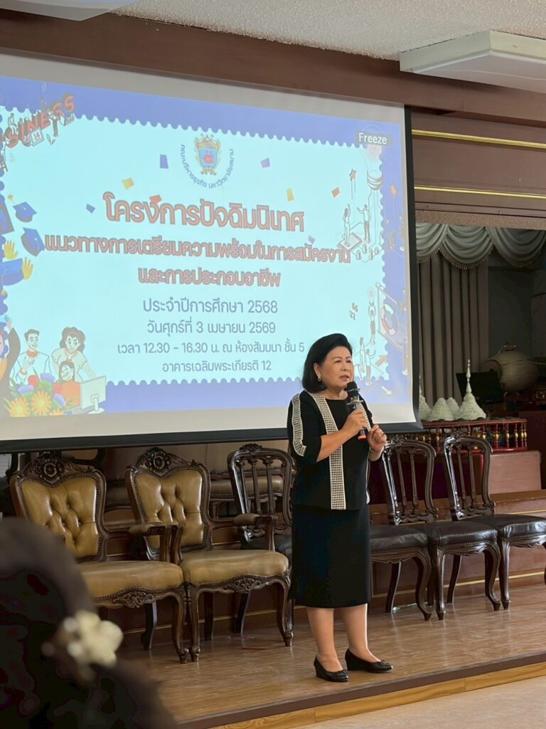 👉 เปิดงานด้วยความอบอุ่นจาก ดร.ศรีสุดา จงสิทธิผล คณบดีคณะบริหารธุรกิจ มหาวิทยาลัยสยาม ที่ให้เกียรติมาเป็นประธานกล่าวเปิดงานและให้โอวาท