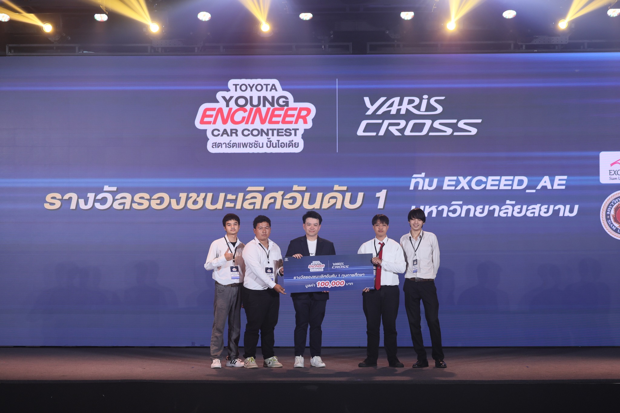 อีกความภาคภูมิใจของชาว ม.สยาม นักศึกษาสาขาวิศวกรรมยานยนต์ ทีม Exceed AE คว้ารางวัล รองชนะเลิศอันดับ 1 พร้อมรับทุนการศึกษา 100,000 บาท ในรุ่น YARIS CROSS จากการแข่งขันโครงการ “TOYOTA YOUNG ENGINEER CAR CONTEST สตาร์ตแพชชัน ปั้นไอเดีย”